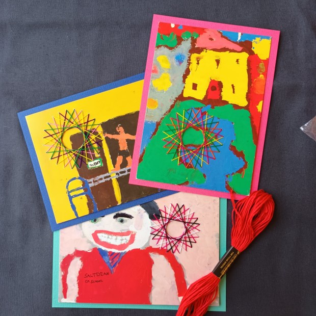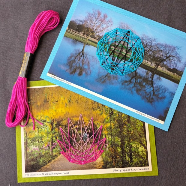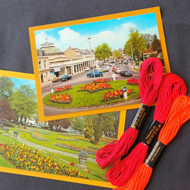 I use hand embroidery to embellish vintage and contemporary postcards. Every card is unique and blank for your own message.