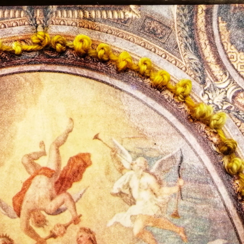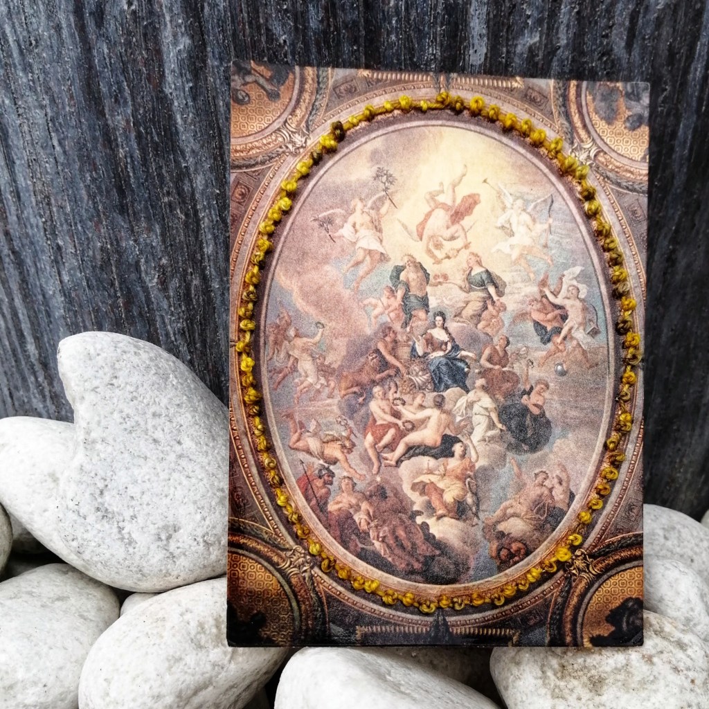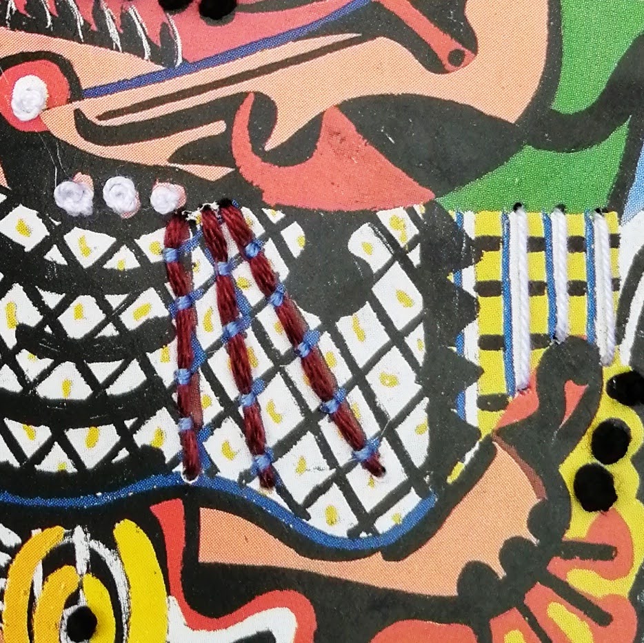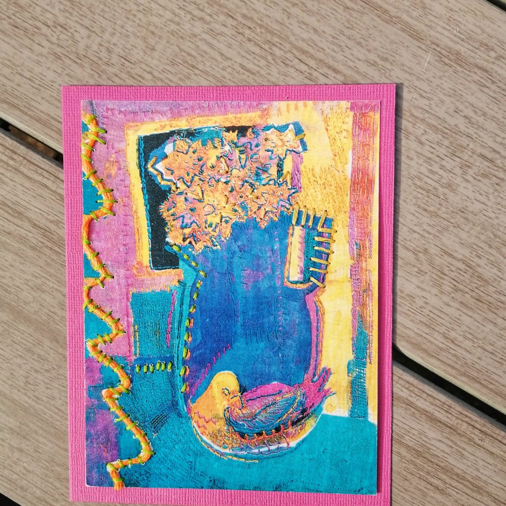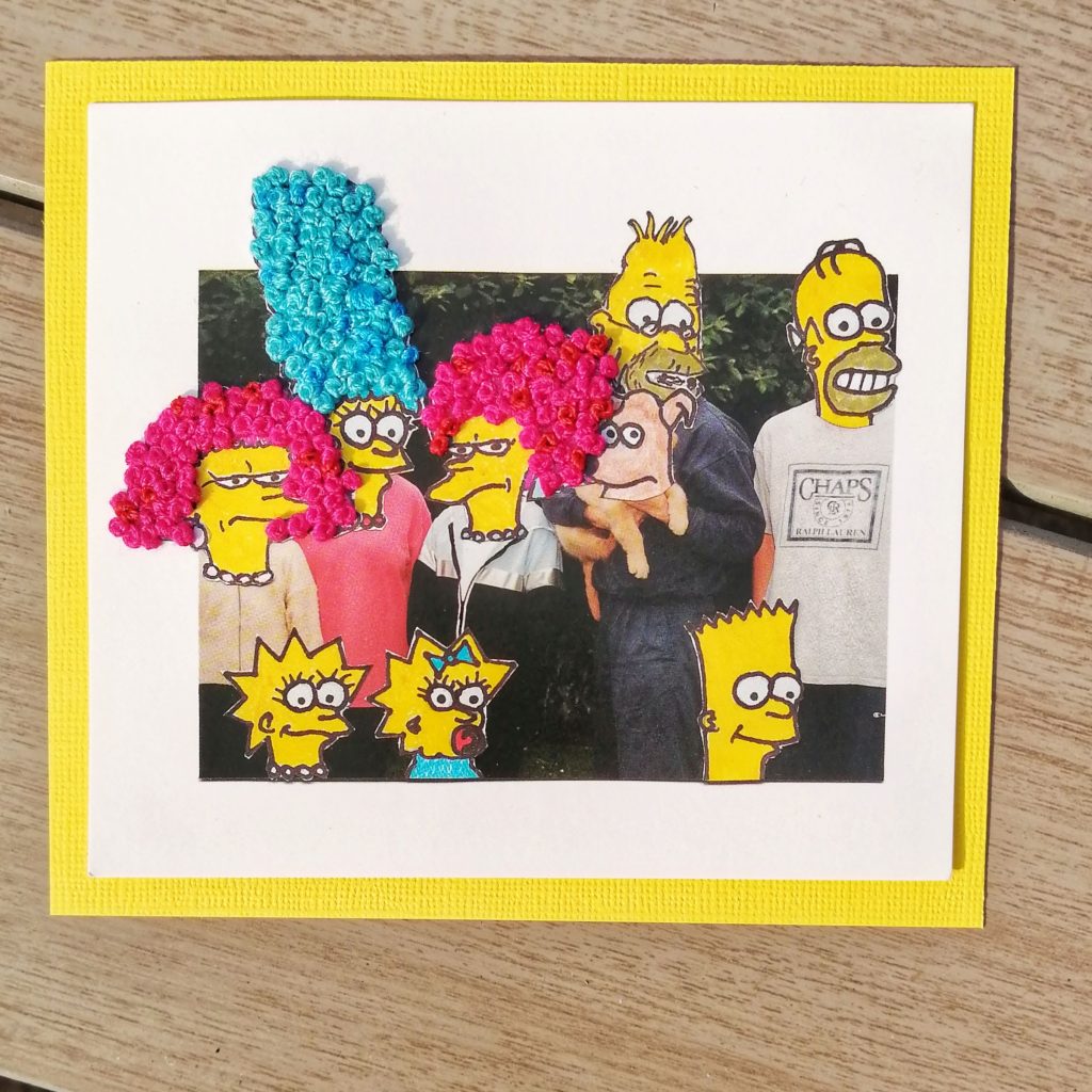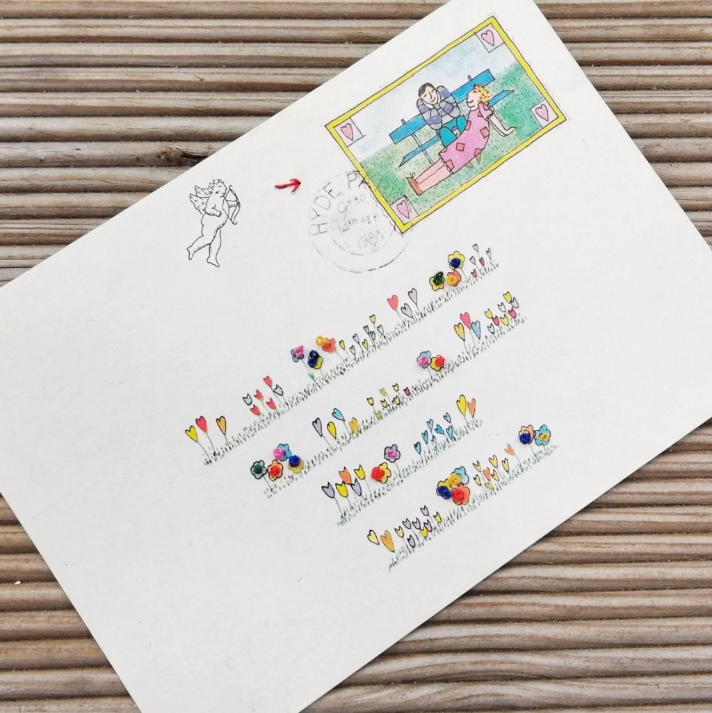 Kit hunts down interesting vintage and contemporary postcards to embellish with embroidery. Some of her postcards are mounted on make greetings cards, others are sold in frames which reveal both the front and back of the card. She sells at local venues in Hampton, check out the ‘sales’ and ‘events’ tabs for details.